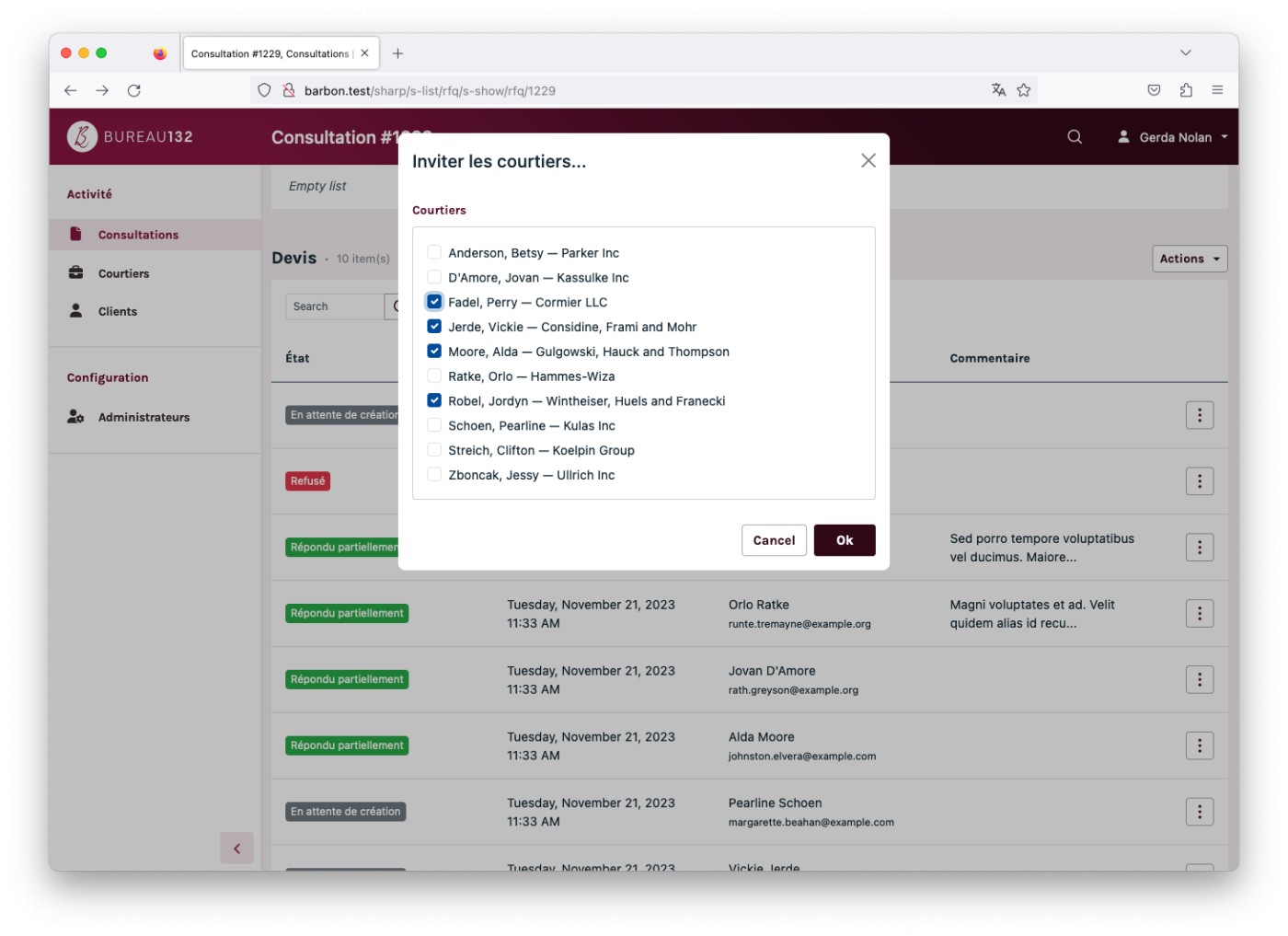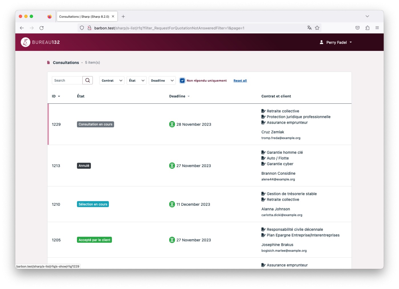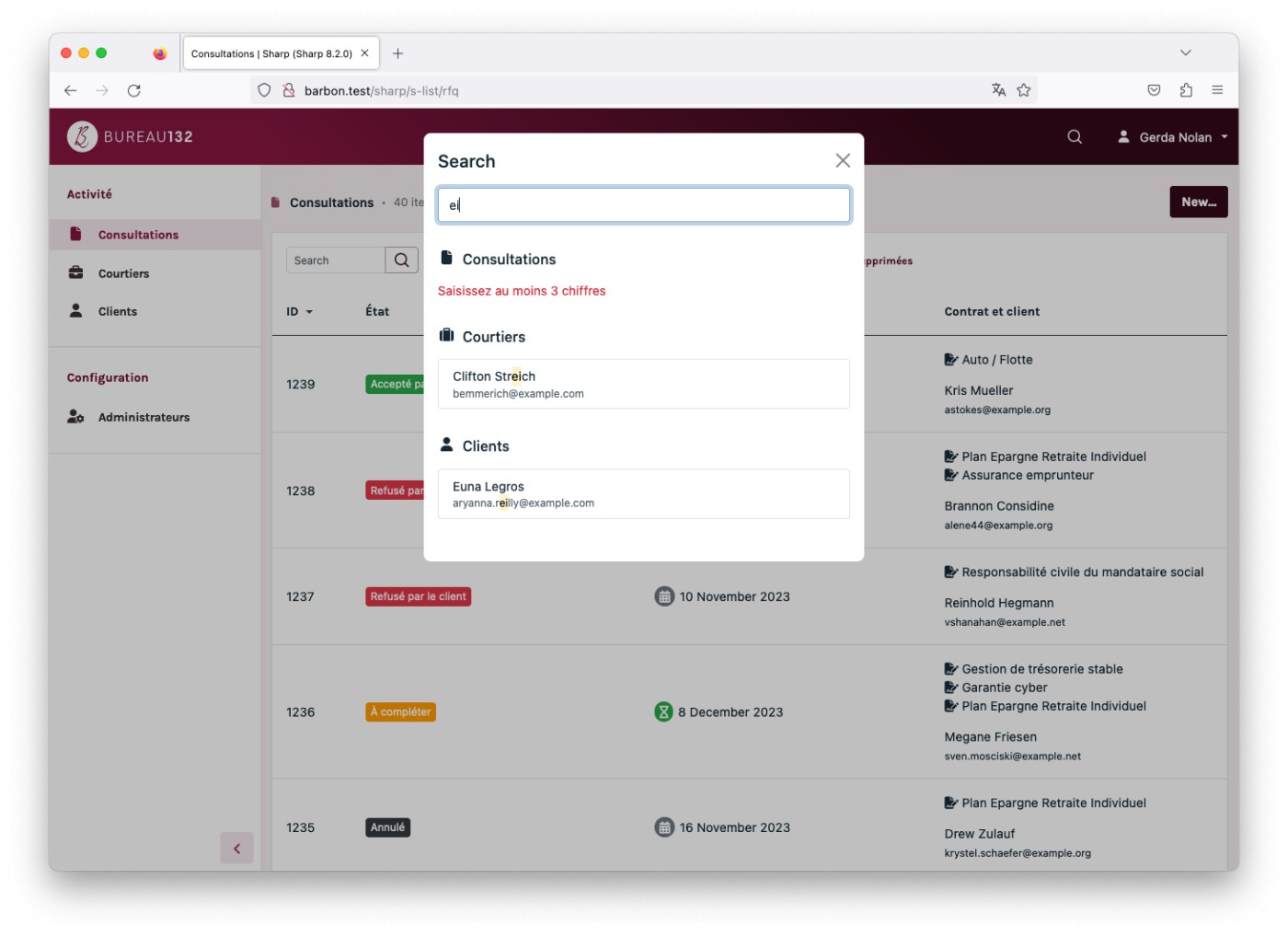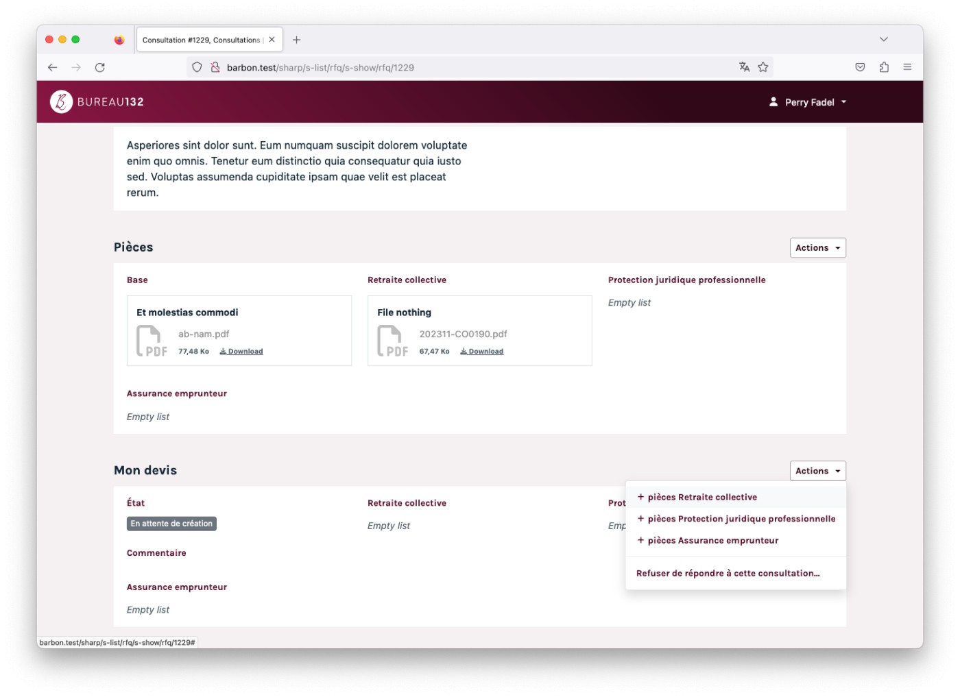 The client is Bureau 132 a French company that helps businesses to find the ideal solution for their insurance needs. It’s quite specific, but you can think of it as an intermediate between companies and insurance brokers. To do so, they needed an online tool to help them manage their customers, their contracts, their brokers... and to manage the workflow of a request for quotes and quote selection.
